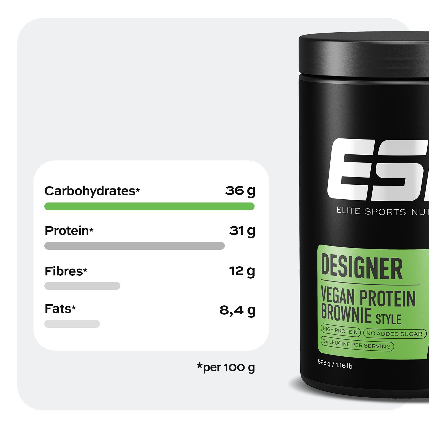 Plus, with 8.9 grams of fibre per serving, our Vegan Protein Brownie Style not only supports your muscles but also provides a significant amount of valuable fibre.45 So, what are you waiting for? Indulge in a treat that's high in protein, rich in fibre, and incredibly delicious.5