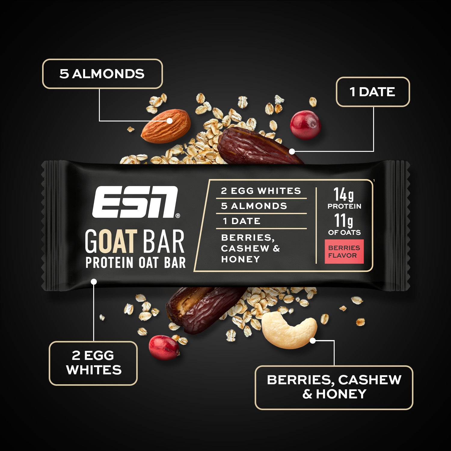 That’s exactly where our GOAT Bar comes in: your new go-to snack on the move, combining high-quality egg white protein for optimal muscle support with complex carbohydrates from oats, healthy fats from nuts, and natural sweetness from fruits and honey.1