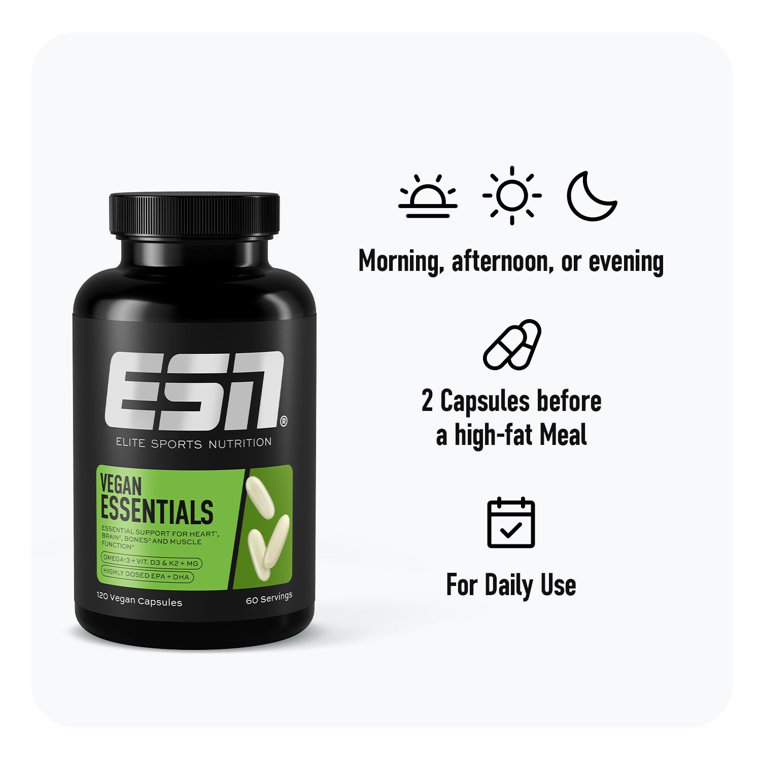 Discover the power of plant-based nutrients with our Vegan Essentials. This four-in-one supplement blends omega-3 from algae oil, vitamin D3, vitamin K2, and magnesium to optimally support your heart, brain, muscles, and bones. It’s the ideal foundation for peak performance and rapid recovery. 1 2 3 4