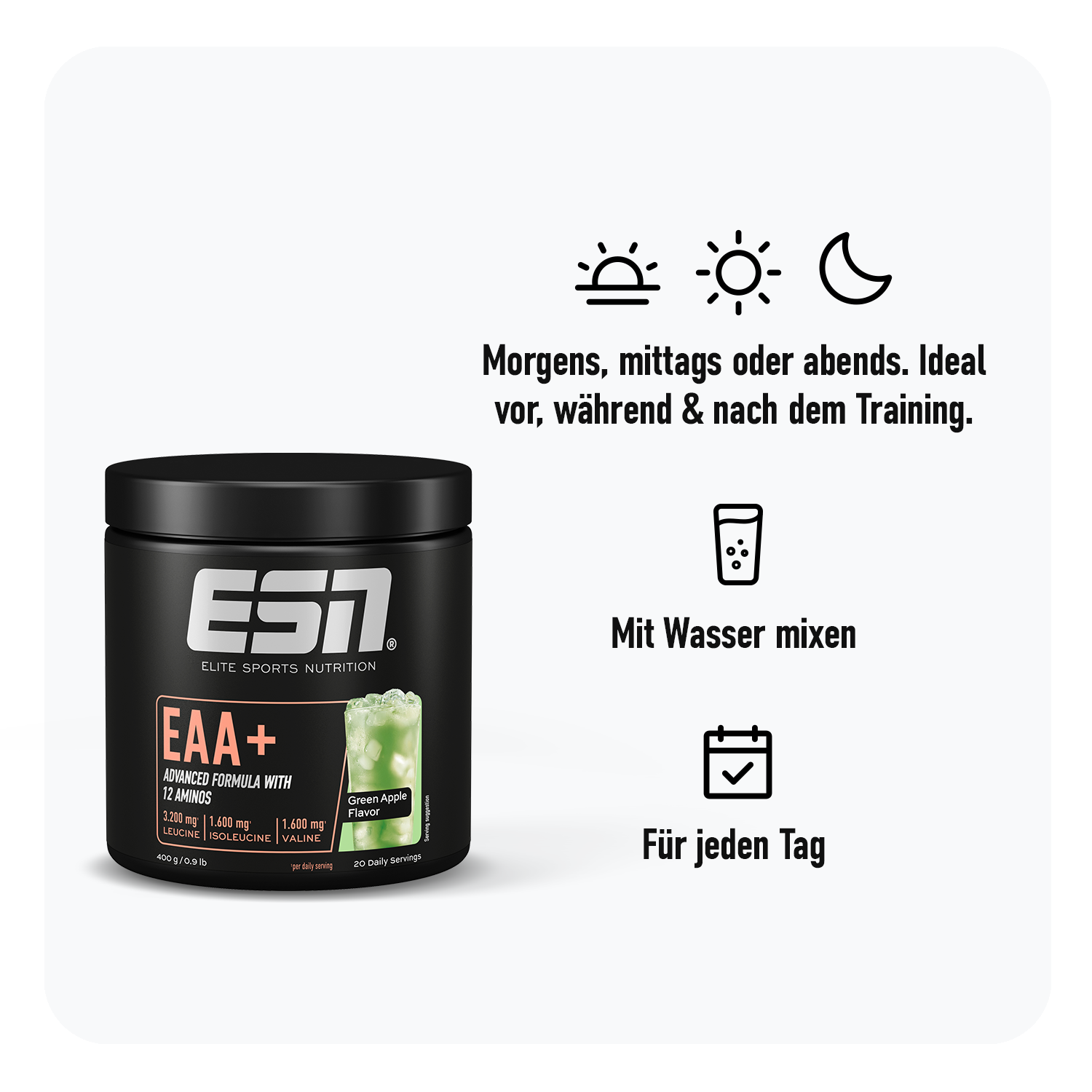 Smarte Amino-Formel: unsere EAA+ mit optimiertem Aminosäurenprofil, darunter 9 EAAs sowie drei weitere, effektive Aminosäuren, AstraGin® und Vitamin B6. Entwickelt für alle Kraft- und Ausdauer-Athletes, die ihre Aminoversorgung optimieren wollen. Effektiv, lecker, vegan.
