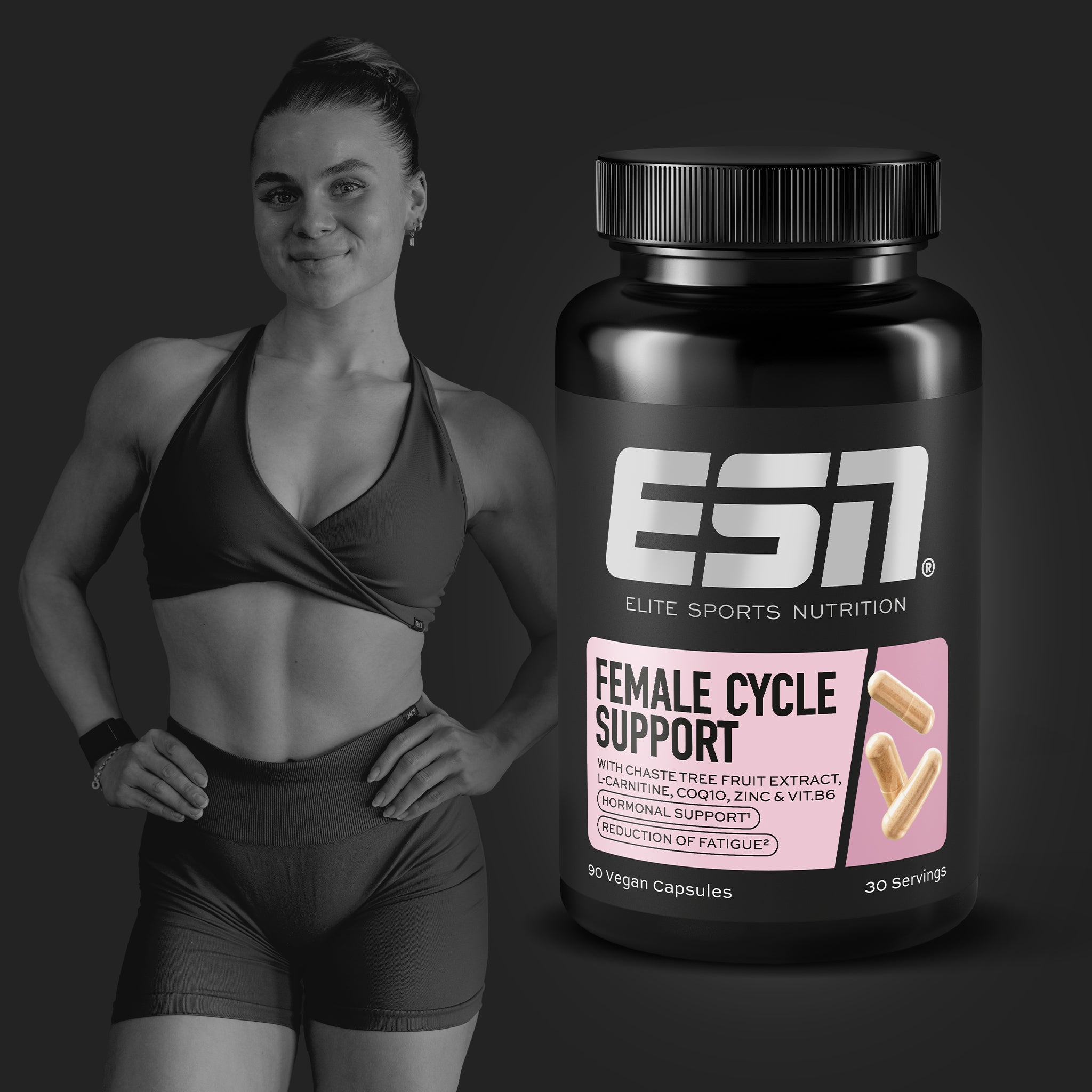 Und hier kommen unsere Hormon-Balance-Kapseln Female Cycle Support ins Spiel. Entwickelt für Frauen, die hohen körperlichen und mentalen Belastungen ausgesetzt sind, bietet es gezielte Unterstützung für ein hormonelles Gleichgewicht. Mit einer einzigartigen Kombination aus Mönchspfeffer-Extrakt, Vitamin B6, einem wissenschaftlich fundierten Aminosäuren-Komplex und mehr kann es dazu beitragen, das Wohlbefinden zu unterstützen, Müdigkeit zu reduzieren und den Hormonhaushalt in Balance zu halten.1,2,3 Dank dieser Formel kannst du dich auf das Wesentliche konzentrieren – deine Performance, deine Ziele und dein Wohlbefinden. Mit unserem Female Cycle Support bleibst du in Balance, auch wenn das Leben hektisch wird.1,2,3