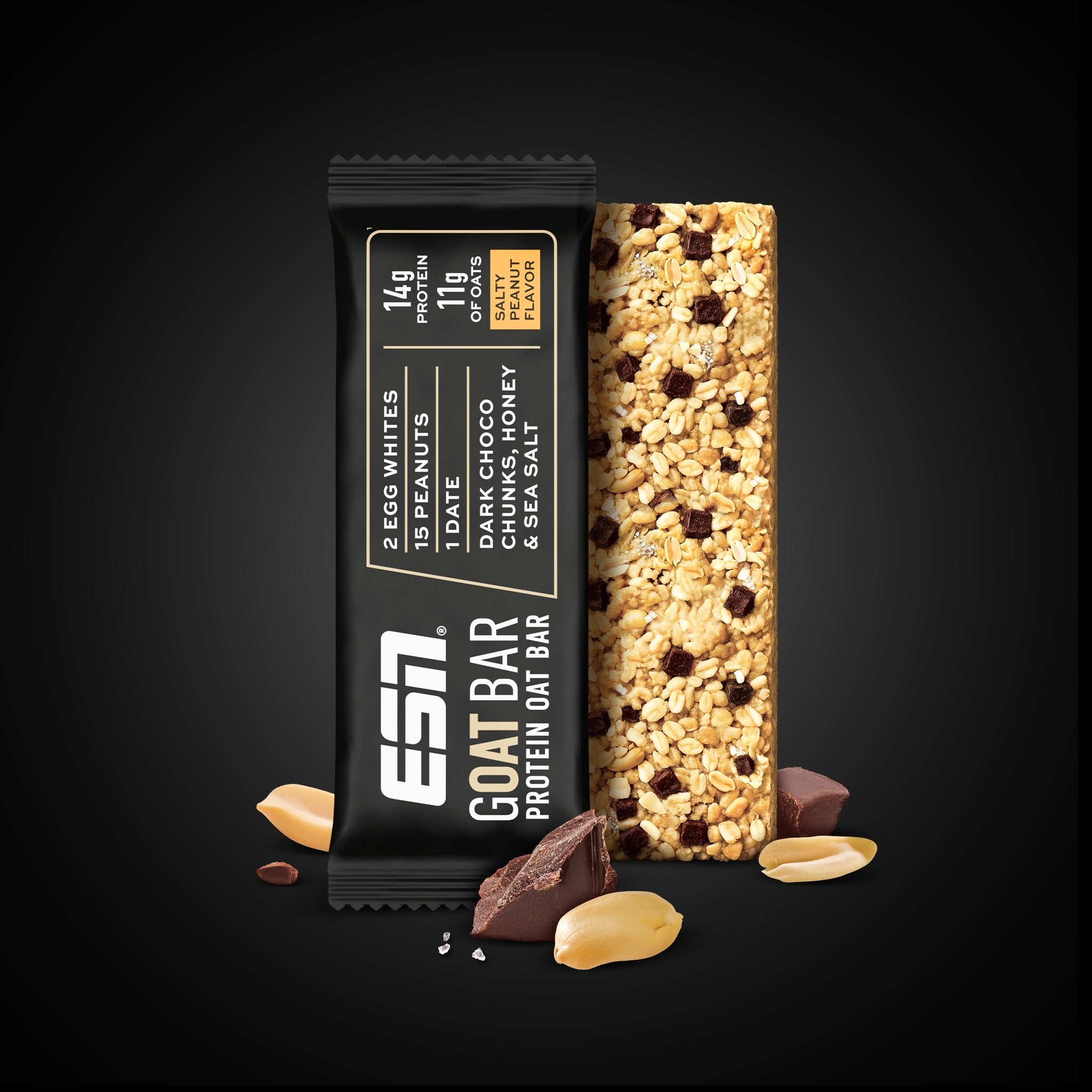 Natürlich stark – mit der idealen Balance aus Oats, Protein & Ballaststoffen. Unser GOAT Bar liefert dir echte Zutaten, 14 g hochwertiges Eiklar-Protein, vollwertige Energie aus Hafer, Nüssen und Früchten – keine Füllstoffe, natürlich gesüßt mit Datteln & Honig.Mit dieser idealen Balance aus hochwertigem Protein als Muskel-Support, komplexen Kohlenhydraten, Ballaststoffen, gesunden Fetten und Mikronährstoffen ist er dein perfekter Snack für Alltag, Job oder Training.1,2 Mit natürlichen Zutaten für echten Geschmack.