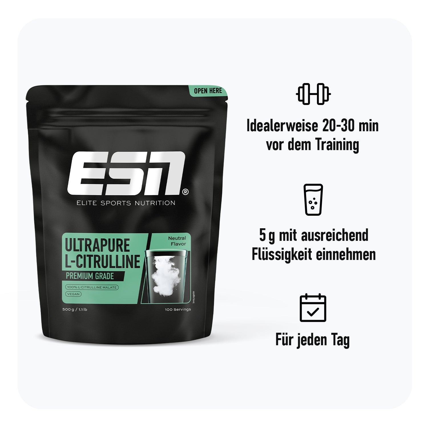 Ultrapure L-Citrulline: 100 % L-Citrullin Malat Pulver in Premium-Qualität. Für alle, die im Training keine Kompromisse eingehen – mikrofein, vegan und vielseitig einsetzbar.